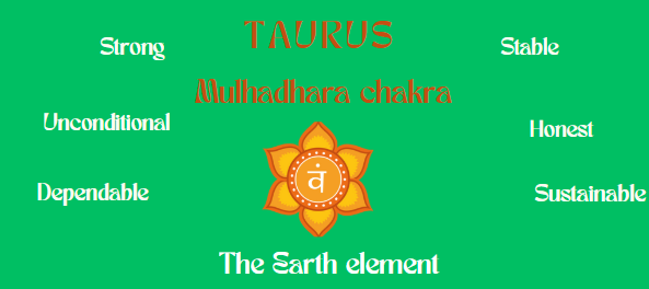 Taurus, the steadfast sign of Earth, harmonizes with our root chakra, its vibrant hue a warm earthy red.